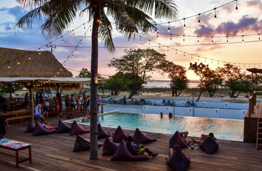 Mad Monkey Trawangan is het grootste hostel van de Gili Eilanden. Door de vele faciliteiten zoals het zwembad, bar en sociale ruimtes is dit het allerfijnste verblijf voor backpackers. Een dormbed kost zo’n €13 per nacht. Je hebt hier ook privékamers vanaf €18.