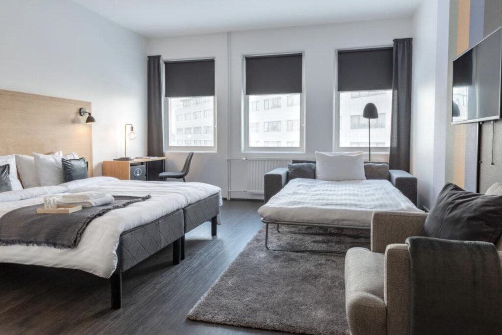 Een mooi hotel midden in het stadscentrum van Reykjavik. De kamers zijn erg mooi en de bedden zijn comfortabel. Ook heb je er zelfs een kleine ruimte om te sporten. Ook zit er ontbijt inbegrepen en is daardoor voor €135 niet duur in Reykjavik.