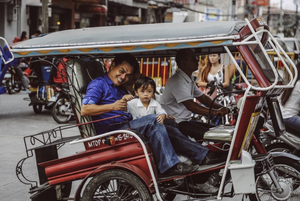 In grotere steden zoals Manila, Cebu City en Davao zijn taxi’s een makkelijke manier om je snel te verplaatsen. Een korte rit kost meestal ₱70–₱150 (€1–2,50), voor langere ritten betaal je ₱300–₱500 (€5–8). Taxi’s hebben meestal een meter, maar check altijd of de meter wordt gebruikt, vooral bij toeristische plekken.