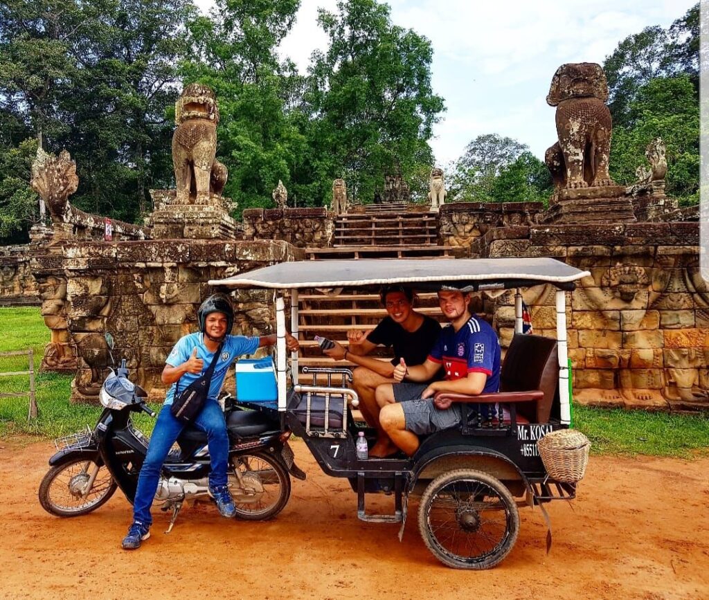 Je kunt een tuktuk ook voor een hele dag huren, wat ideaal is als je bijvoorbeeld Angkor Wat gaat bezoeken. Wij betaalden ongeveer 15 dollar per persoon (met z’n tweeën) voor een dagtocht vanuit Siem Reap, dat zo’n 6 kilometer van het complex ligt. De chauffeur rijdt je overal heen, stopt bij elke tempel en wacht rustig tot je weer verder wilt. Vaak weet hij ook veel te vertellen over de plekken waar je komt. Zeker bij Angkor Wat is een privé tuktukchauffeur echt onmisbaar, want het terrein is enorm en te groot om te voet te doen.