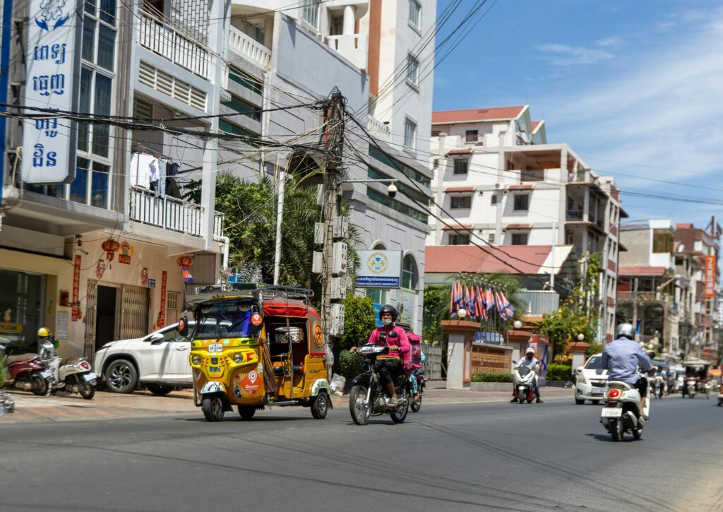 In Cambodja stikt het echt van de tuktuks, je ziet ze letterlijk op elke straathoek staan. Waar je ook bent, er is altijd wel een chauffeur die je een rit wil aanbieden. De tuktuk is dan ook veruit het makkelijkste en leukste vervoermiddel in het land. Voor korte ritten binnen steden als Phnom Penh of Siem Reap betaal je meestal tussen de 1 en 3 euro, afhankelijk van de afstand en je onderhandelingsskills. Het is altijd slim om de prijs even van tevoren af te spreken, want er zijn geen meters.