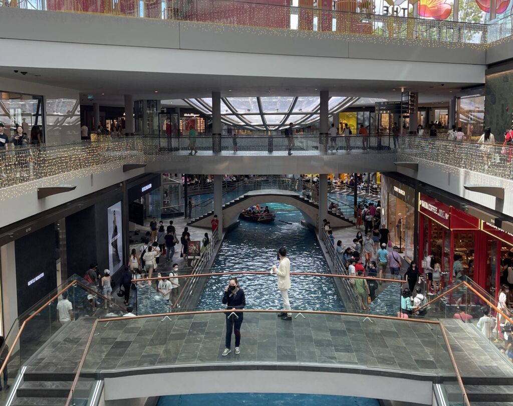Binnenin zit het luxe Shoppes at Marina Bay Sands: een gigantisch winkelcentrum met dure merken, airco op standje vrieskist en zelfs een indoor kanaal waar je met een gondel overheen kunt varen. Buiten het gebouw, aan de Marina Bay Waterfront, kun je elke avond een gratis licht- en watershow bekijken (Spectra Light Show), met fonteinen, muziek en projecties. Tijden zijn meestal rond 20:00 en 21:00 (en op vrijdag/zaterdag ook 22:00), check voor de zekerheid even vooraf.