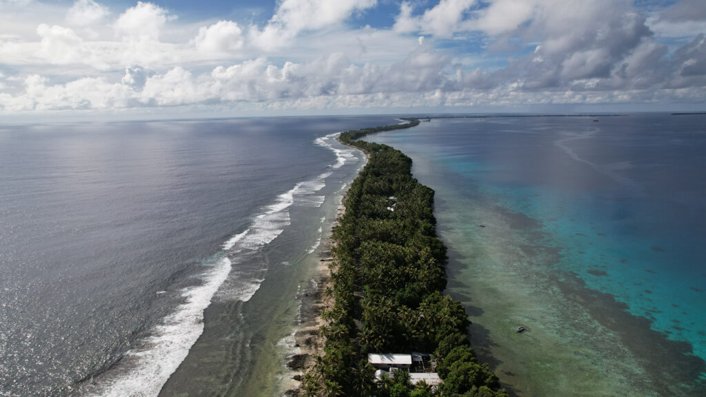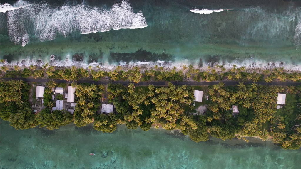 ‘De route naar het noorderpunt over het waanzinnige landschap van Tuvalu.”