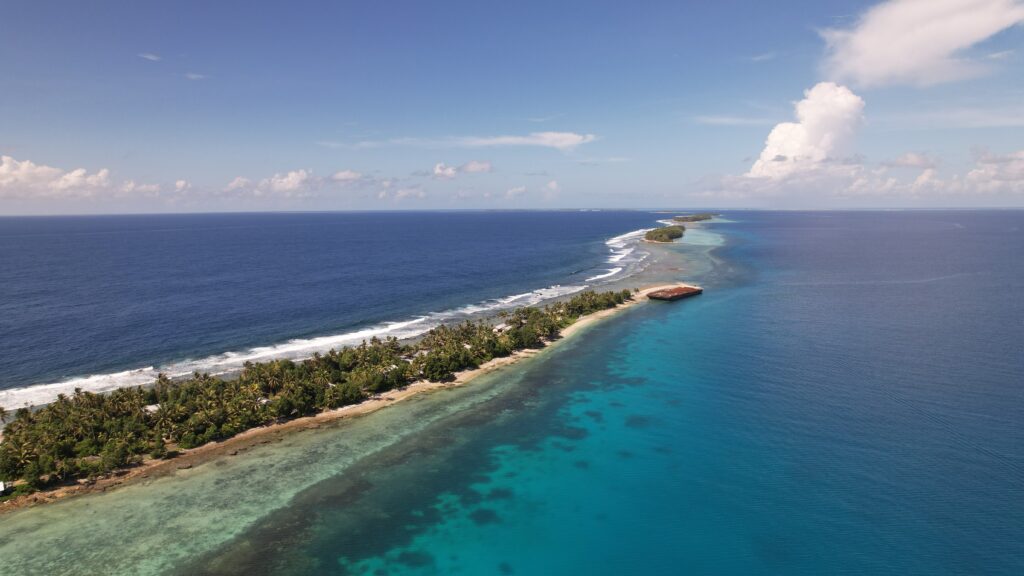 Het mooiste uitzichtpunt van het eiland over de andere atolls (eilanden) rondom Funafuti. Je kan hier komen door een motorbike te huren, wat de manier is om je over het eiland te verplaatsen. De rit hierheen is prachtig, waarbij je zowel links als rechts de oceaan om je heen ziet! Hieronder een dronefoto die ik had gemaakt.