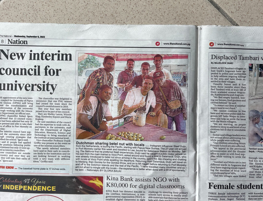 Ik heb deze route zelf wel solo gedaan, op de bonnefooi. Maar ik ben een man, twee meter lang, en val niet bepaald in de categorie kwetsbaar. Zelfs dan voelde ik me op sommige momenten op m’n hoede. Voor vrouwelijke reizigers is solo reizen in Papoea-Nieuw-Guinea ronduit af te raden. Seksueel geweld komt onder de lokale bevolking veel voor, en als buitenlandse vrouw val je extra op. De positie van vrouwen is op veel plekken zorgwekkend, en verkrachtingen zijn helaas geen zeldzaamheid. Reizen met een betrouwbare gids of reisgenoot is hier echt geen overbodige luxe. Papoea-Nieuw-Guinea is rauw, intens en onvergetelijk, maar je veiligheid moet altijd voorop staan.