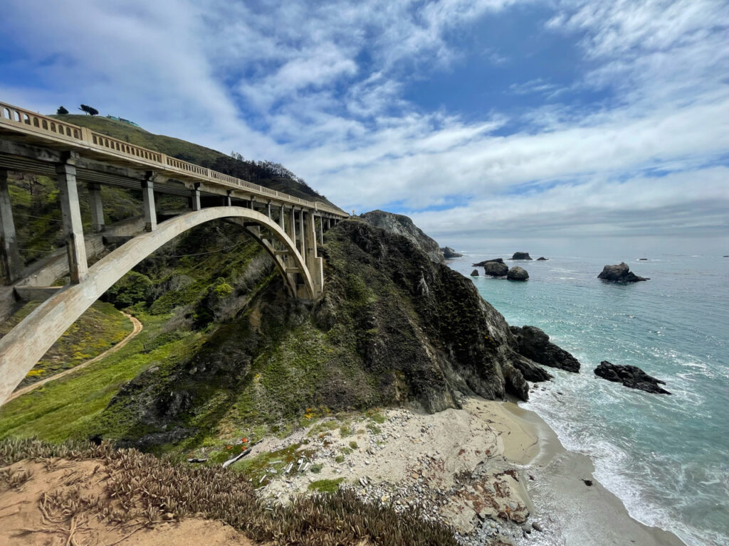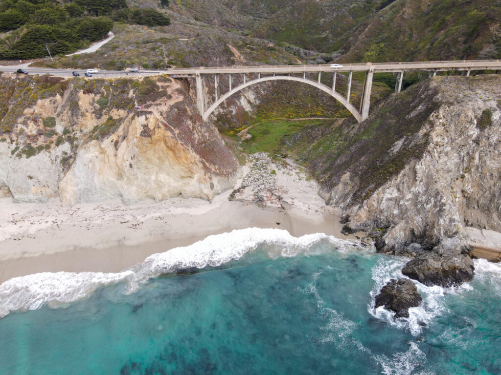 Het bekendste fotomoment vind je bij de Bixby Creek Bridge, midden in Big Sur. Vanaf hier kijk je uit over de brug, de kustlijn en de oceaan. Onderweg zijn er genoeg plekken om even te stoppen, zoals bij McWay Falls, waar een waterval direct de zee in loopt. Verder naar het zuiden rijd je langs kustplaatsen als Santa Barbara en Malibu, waar de route langzaam overgaat in het leven rond Los Angeles.