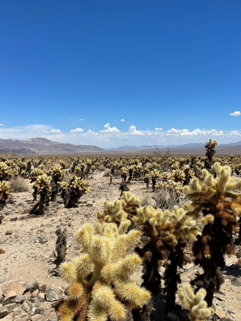 Joshua Tree National Park is een prima park om mee te pakken tijdens een rondreis door Californië, maar het is geen must als je weinig tijd hebt. Het park ligt tussen de Mojave en de Colorado woestijn en staat vooral bekend om de grillige Joshua trees, cactussen en bijzondere rotsformaties. Je rijdt hier vooral rond en stopt af en toe om een korte wandeling te maken of even uit te stappen voor een uitzicht. Het park is overzichtelijk en de meeste bezienswaardigheden liggen dicht bij elkaar, waardoor je Joshua Tree makkelijk in één dag kunt zien. Juist dat maakt het een fijne stop als je onderweg bent richting of vanaf Los Angeles.