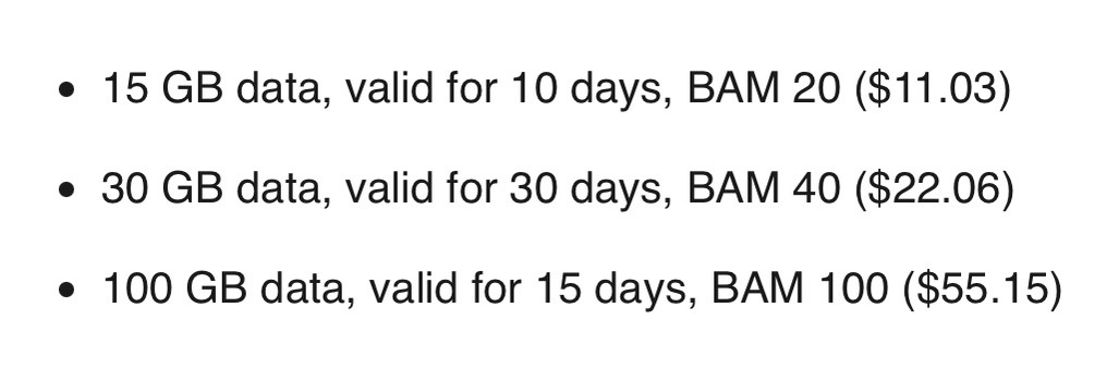 Tot op het heden kan je nog geen lokaal simkaartje halen op het vliegveld. Daarom zal je er een in de stad van aankomst moeten regelen. Je hebt Bosnië & Herzegovina meerdere providers, waarvan BH Telecom, HT Eronet de grootste zijn. De prijzen liggen ongeveer gelijk, maar BH Telecom heeft een betere dekking. Daarom raad ik aan om een simkaart bij BH Telecom te halen. Je hebt met name in Sarajevo ontzettend veel filialen hiervan om naar binnen te lopen. Let op; in het weekend zijn ze beperkt open.