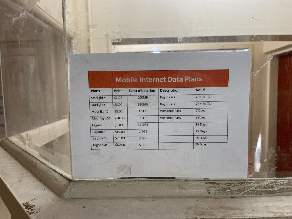 Als je een reis door Tuvalu maakt kun je ervoor kiezen om een lokale simkaart aan te schaffen. Al hoewel je op Tuvalu prima zonder internet kan leven, is het leuk om het thuisfront op de hoogte te houden met de mooiste foto’s uit het paradijs. Je hebt maar bij enkele accommodaties wifi tot de beschikking en dus zal je een afweging moeten maken of je het waard vindt om een simkaart te halen. Mobiel internet is namelijk kostbaar in Tuvalu en dus erg duur. Ook is het internet erg traag en is er vaak alleen 3G snelheid.