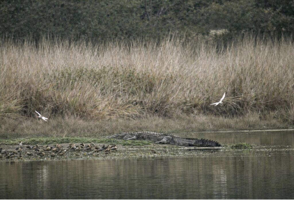Naast de tijger heeft Ranthambore veel te bieden. Luipaarden zijn indrukwekkend maar zeldzaam, terwijl herten en antilopen zoals chital en sambar overal te zien zijn, vaak bij waterplaatsen. Kleine wilde katten, zoals de junglecat en leopard cat, zijn schuw en lastig te spotten, maar bijzonder als je er één ziet. Krokodillen liggen vaak op de oevers van meren en riviertjes, en roofvogels en pauwen vliegen overal rond. Ook langoeren en makaken kom je regelmatig tegen, vooral bij ingangen en oude ruïnes. Zelfs zonder tijger is een safari hierdoor nooit saai en geeft het een goed beeld van de natuur van India.