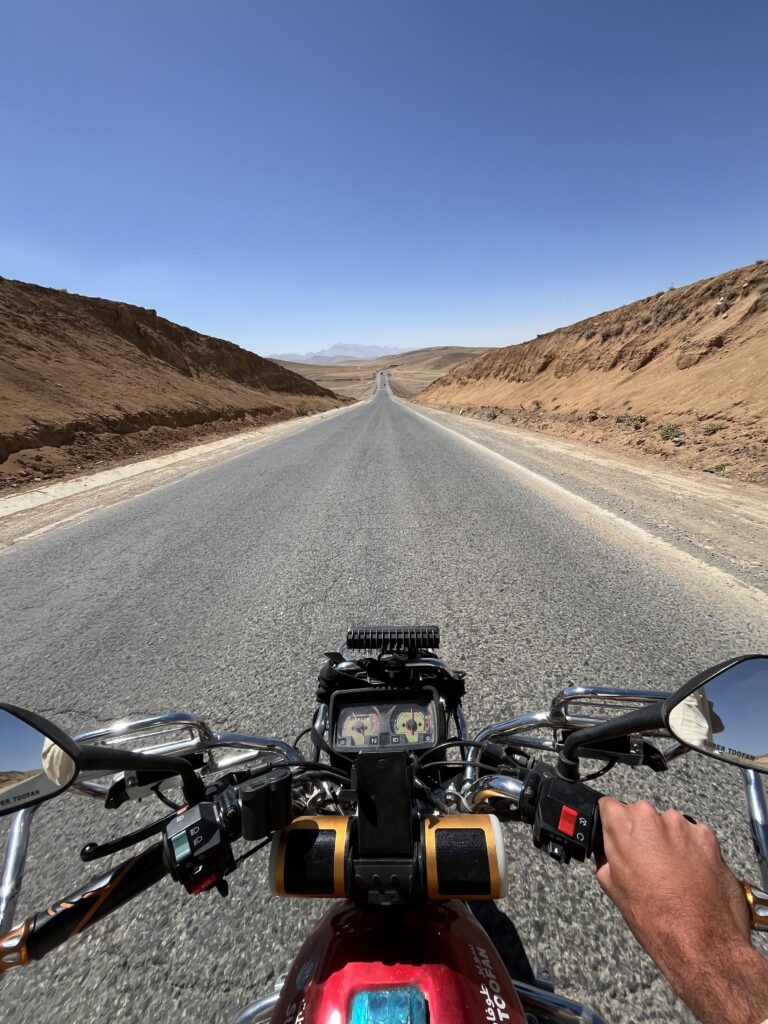 Een van de beste manieren om Afghanistan écht te ontdekken is met de motor. Zelf heb ik geen officieel motorrijbewijs, maar dankzij mijn ervaring tijdens eerdere reizen had ik nergens problemen, ook niet bij checkpoints. Het rijden door de bergen, langs kleine dorpjes en open valleien is gewoon prachtig en heeft echt mijn reis in Afghanistan gemaakt.