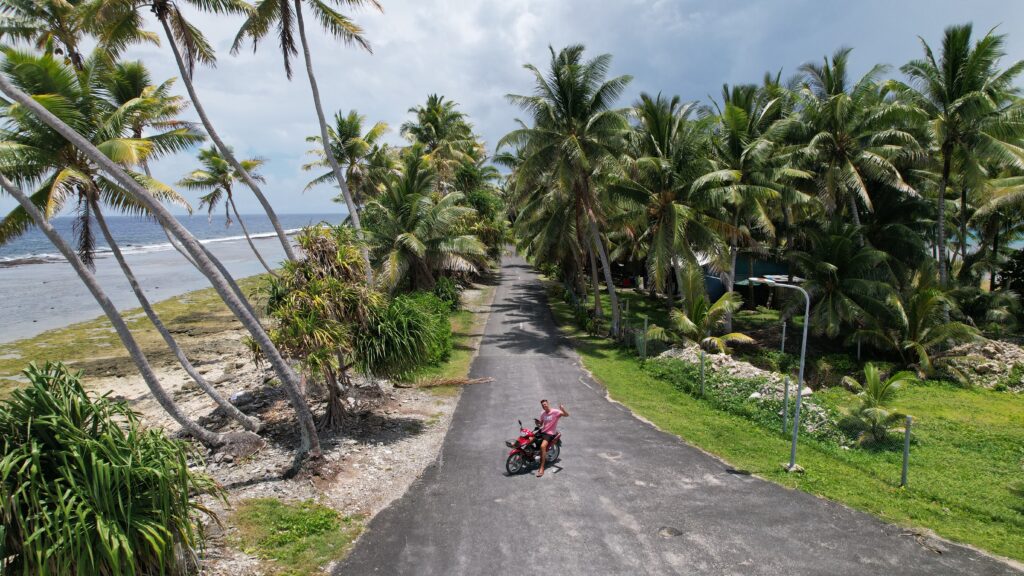 “De beste en bovendien enige manier om je over het eiland van Funafuti te verplaatsen is per brommer.”