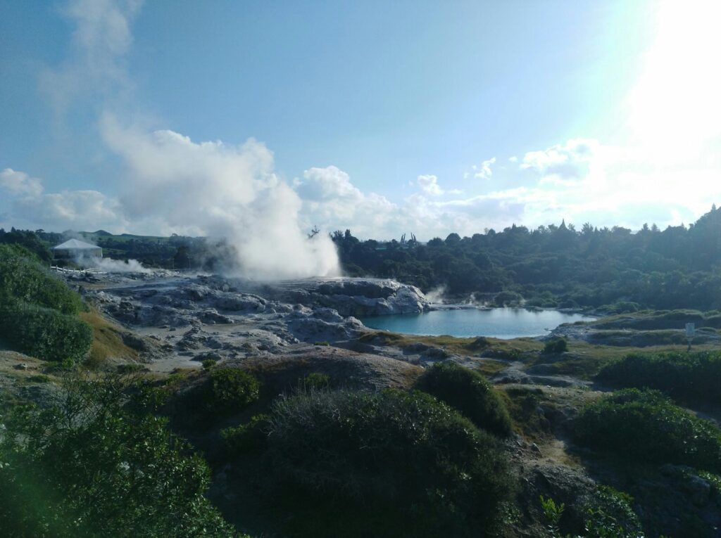 Na alle stoomvelden en adrenaline is Rotorua ook een heerlijke plek om juist te ontspannen. Door alle geothermische activiteit liggen er overal natuurlijke warmwaterbronnen en spa’s. Het ruikt misschien nog steeds naar rotte eieren maar zodra je in dat warme mineraalwater zakt vergeet je het meteen. De warmte komt recht uit de aarde en dat voelt echt anders dan een normaal bad.